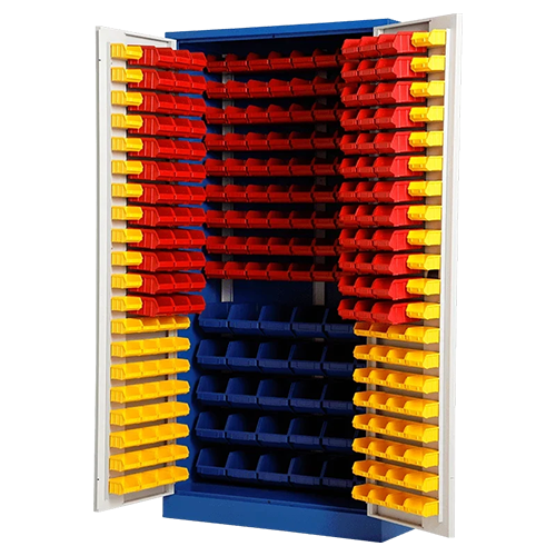 De kast met gereedschapsbakken bestaat uit BA, BB en BC bakken. De kast wordt inclusief de bakken geleverd. Daarnaast is de kast afsluitbaar.