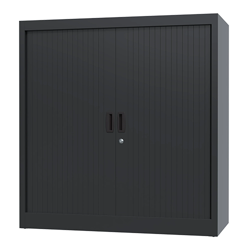 De lage kast met schuif/ roldeuren is zeer geschikt voor het veilig opbergen van documenten.