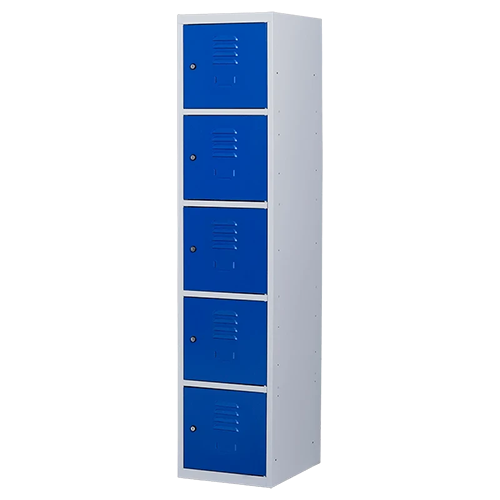 Kast met 15 lockers verdeeld over 3 kolommen.