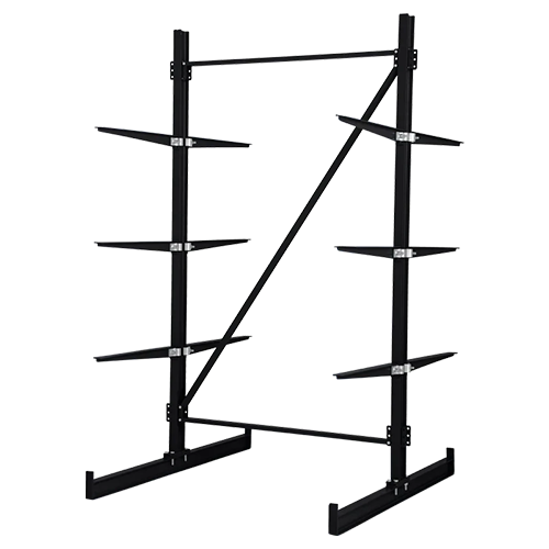 Stabiele stelling met zes in hoogte verstelbare legborden.