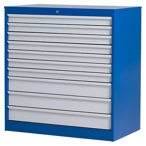 De vaste kast voor gereedschap is niet verrijdbaar. Deze kast beschikt over 10 stalen laden van hoge kwaliteit. De kast is zeer geschikt voor het gebruik in werkplaatsen.
